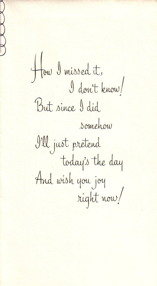 Belated Birthday - Honest Apology - Slim Vintage Greeting Card - Embossed