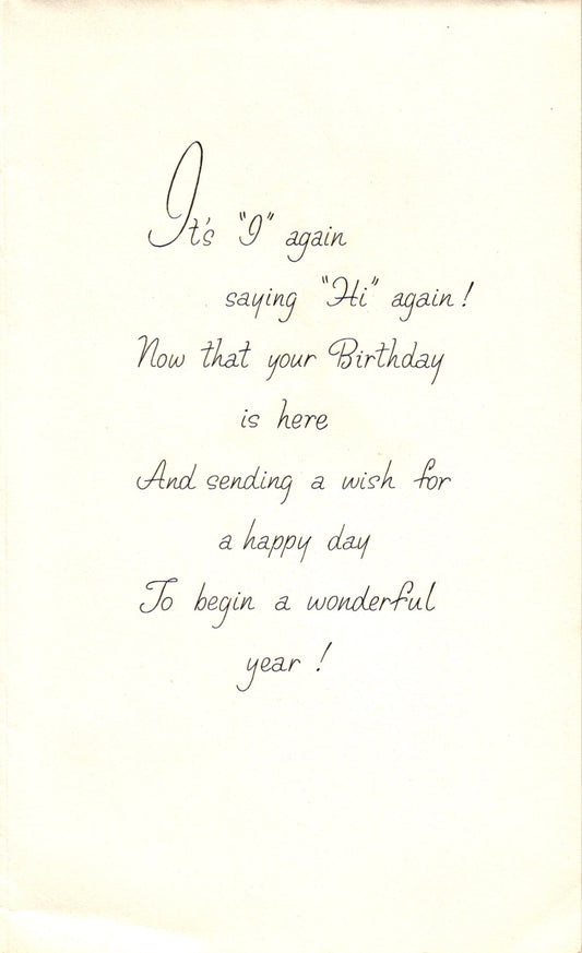 Birthday - Yarn Basket - Vintage Greeting Card - Gold Stamped