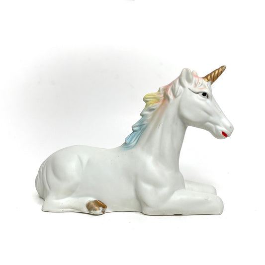 80s Vintage Porcelain Ceramic Unicorn Statue