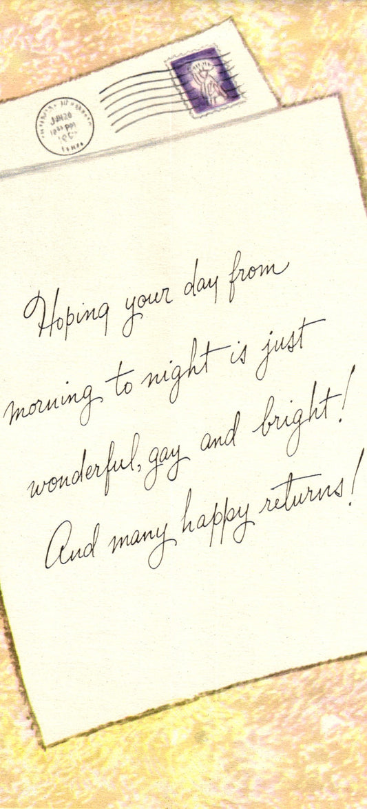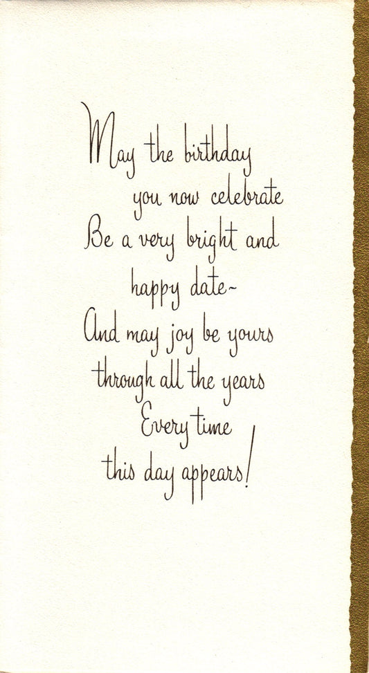 Birthday - Delightfully Gay - Glossy Vintage Greeting Card - Gold Stamped + Embossed