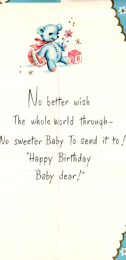 Birthday - Happy Birthday Baby - Glossy Slim Vintage Greeting Card - Gold Stamped + Embossed