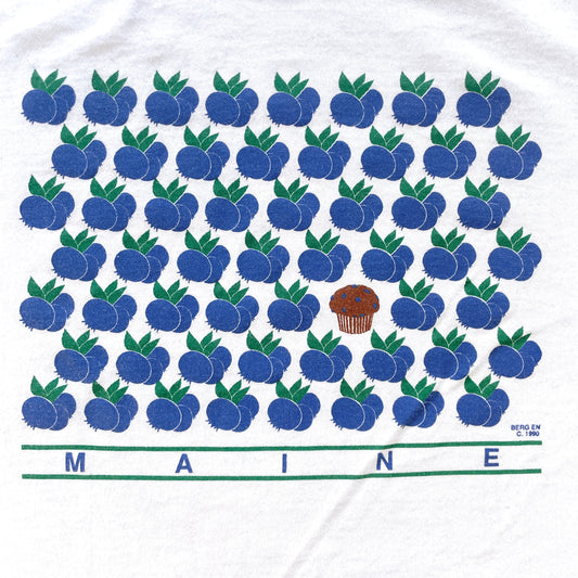 90s Vintage Maine Blueberries & Muffin T-Shirt White (L)