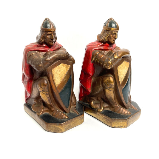 Marion Bronze 'Crusaders' Knight Bookends 1930s Bronze Clad