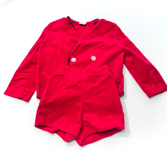 Red Velveteen Two-Piece Lounge Wear Pajamas 2T