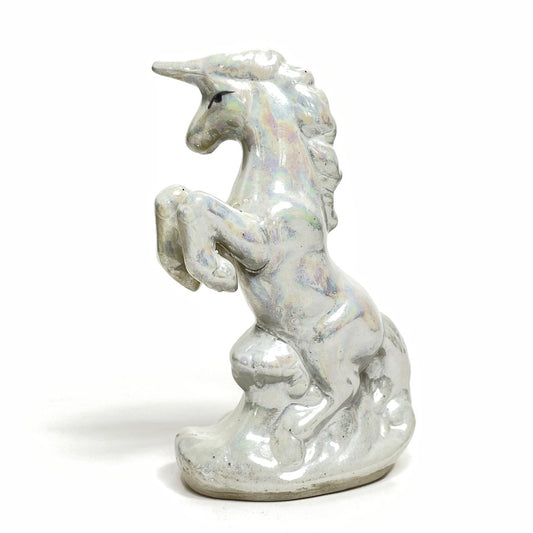 Midcentury Iridescent Glazed Ceramic Unicorn Figurine (Japan)