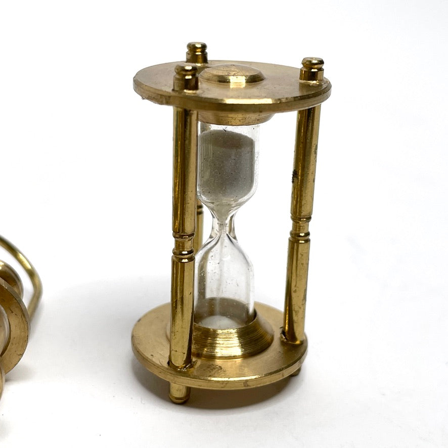 Lot of 12 brass miniature dollhouse items. Navigation/nautical, adventure gear, hobbies, etc. - Made in Holland. Items are antique-style from 1800s to Victorian era.