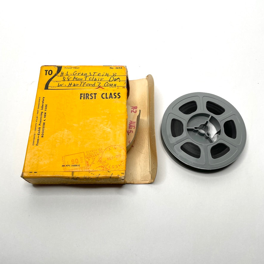 Big box of personal ephemera, letters, and photos from 1950s Connecticut. Mostly letters between a young boy scout and his parents while he was away at camp, and photos from those years and of family. There are dozens of letters, about 2 dozen postal cards, a small pile of ephemera, a drawing, dozens of different types of photos from multiple years, multiple types of photo negatives, and 1 kodak reel film unknown contents.