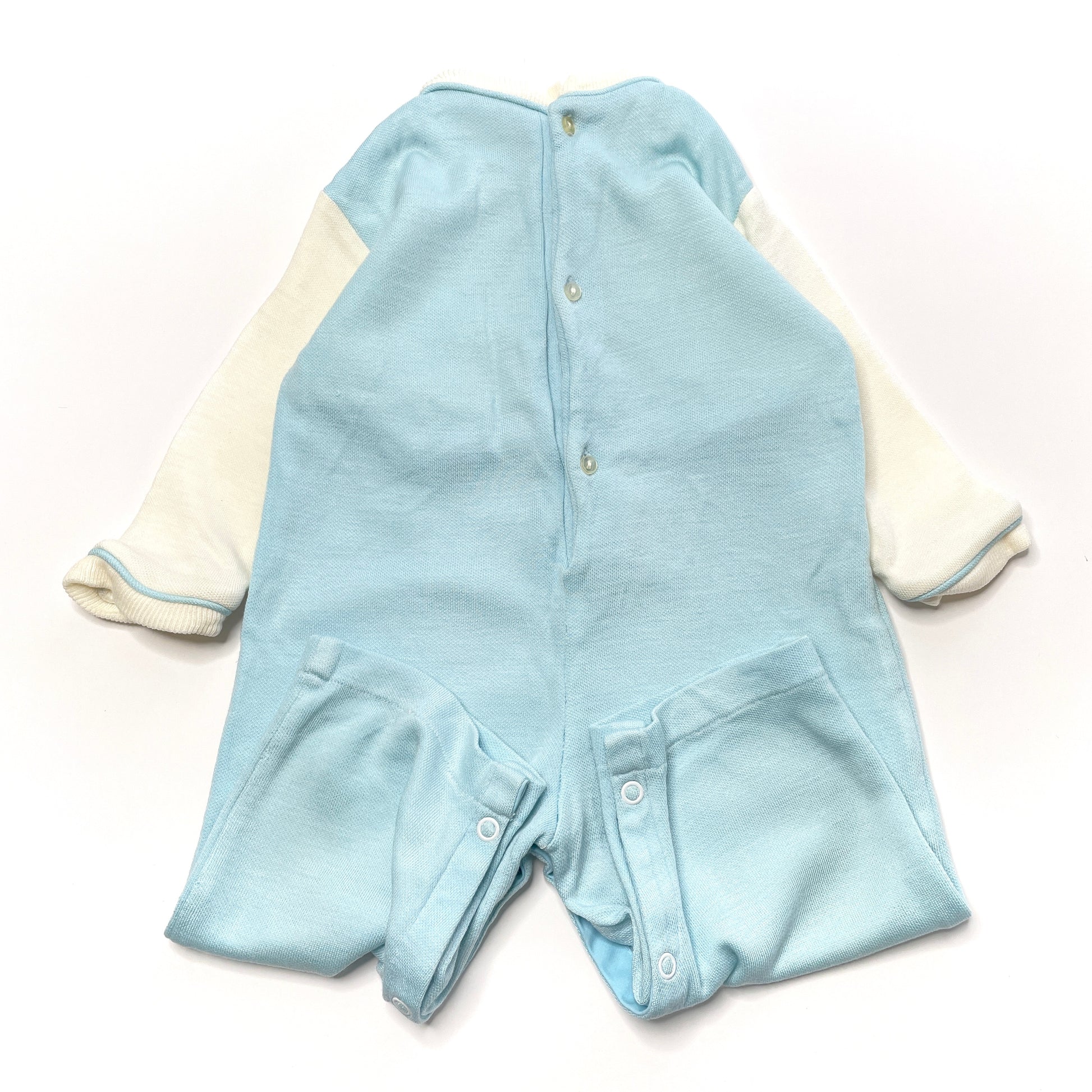 Buttons on back, snaps at bottom. Built in shirt. Easy comfy-cute outfit.