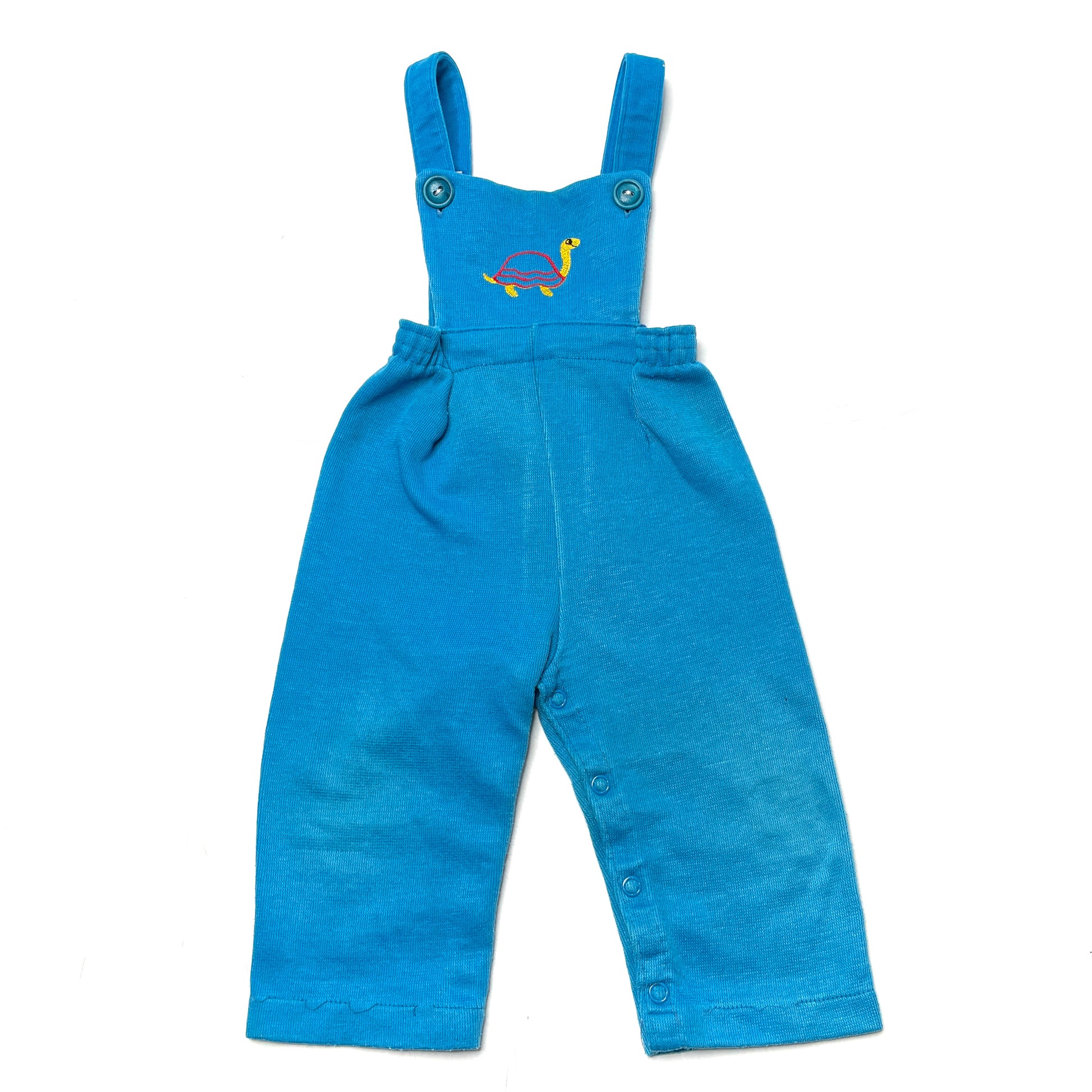 Turtle Embroidery Cerulean Blue Overalls 12-18M