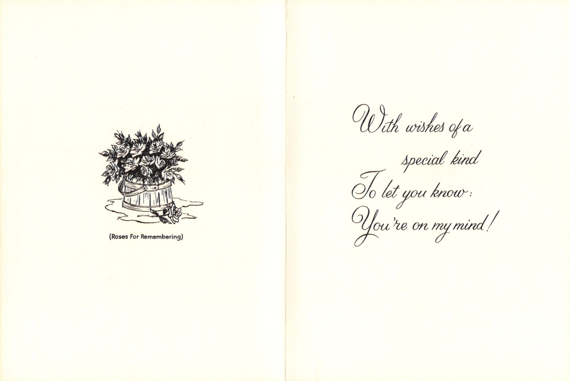 Greetings - Thinking of You - Vintage Greeting Card - Floral Plaids