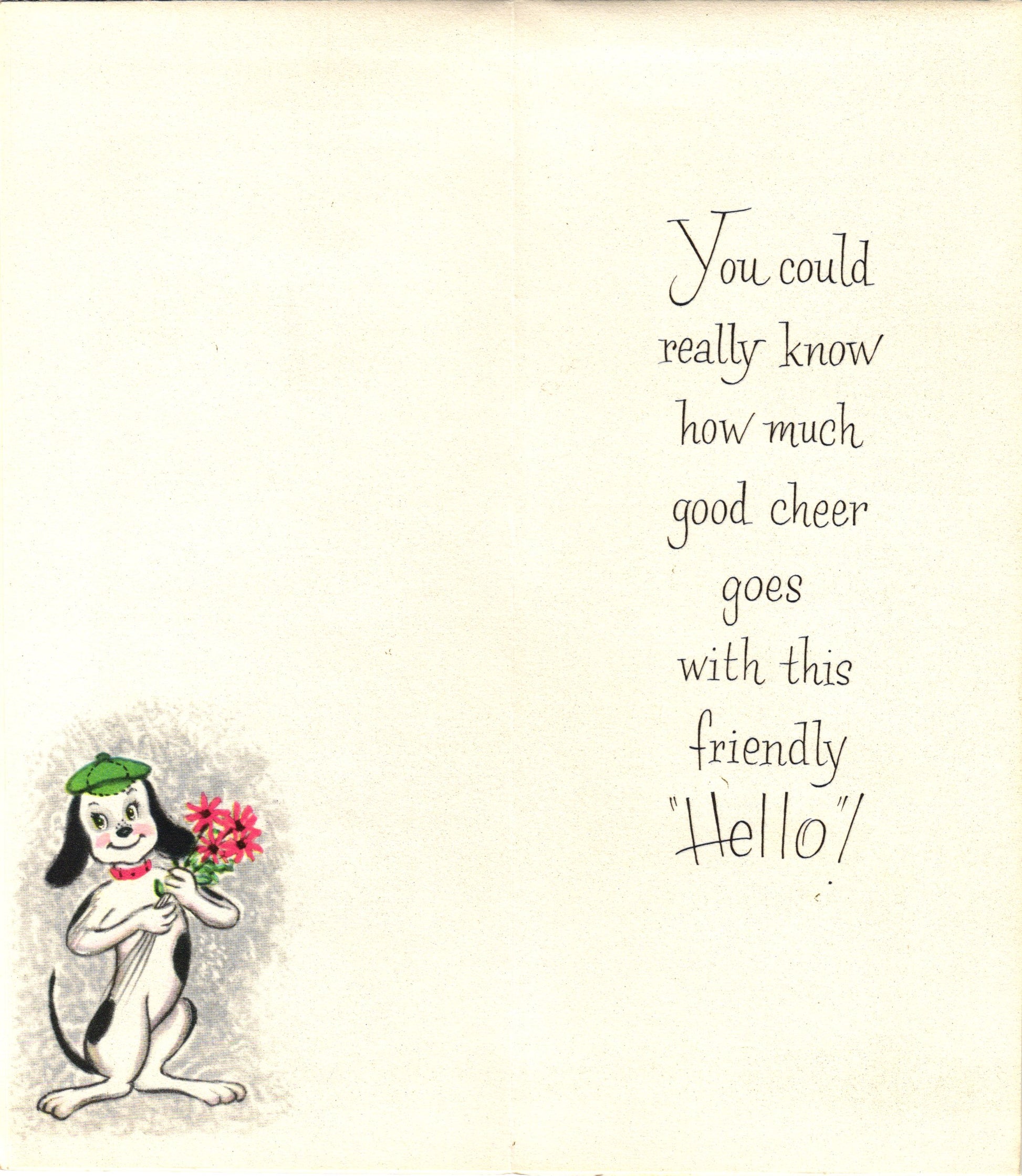 Greetings - Wishbone Dog - Slim Vintage Greeting Card - Gold Stamped + Embossed