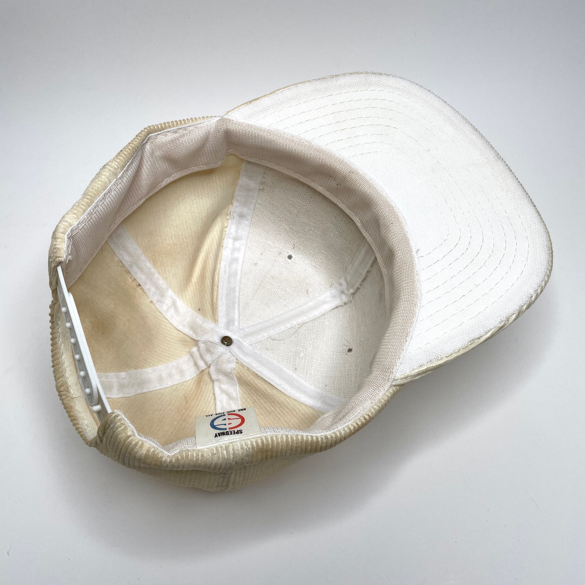 -White corduroy with embroidered logo