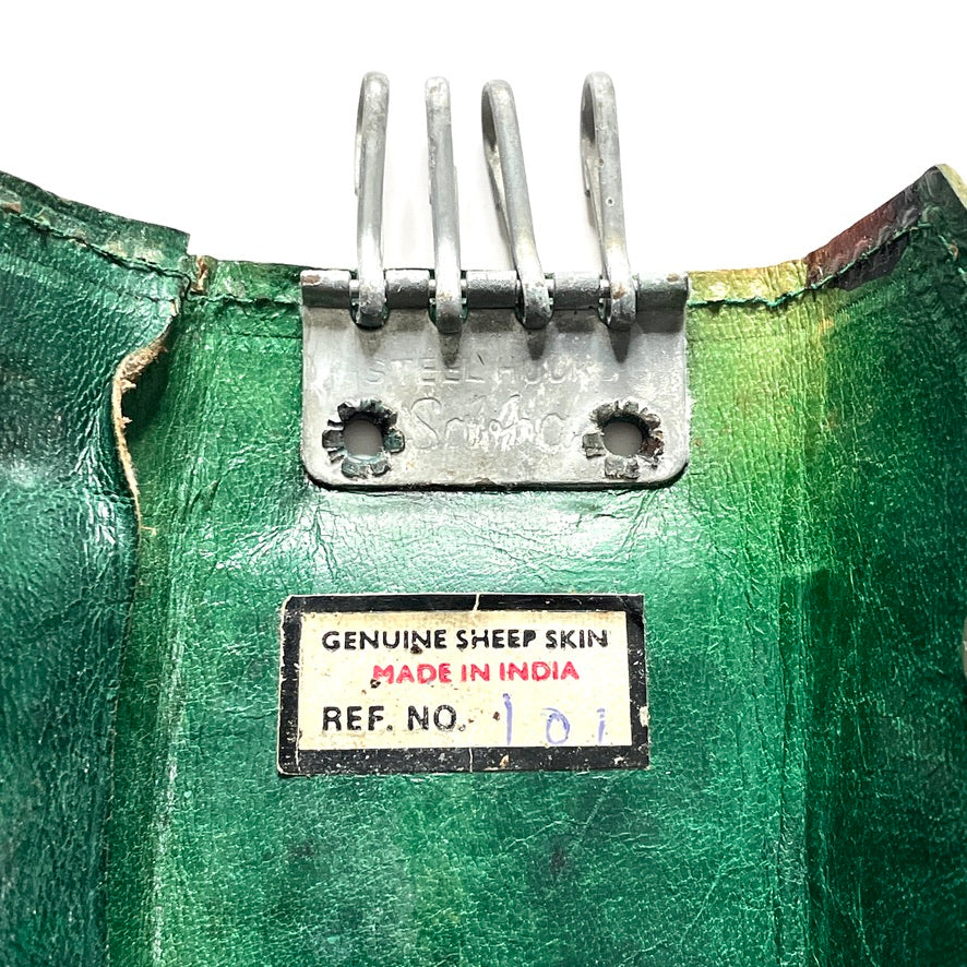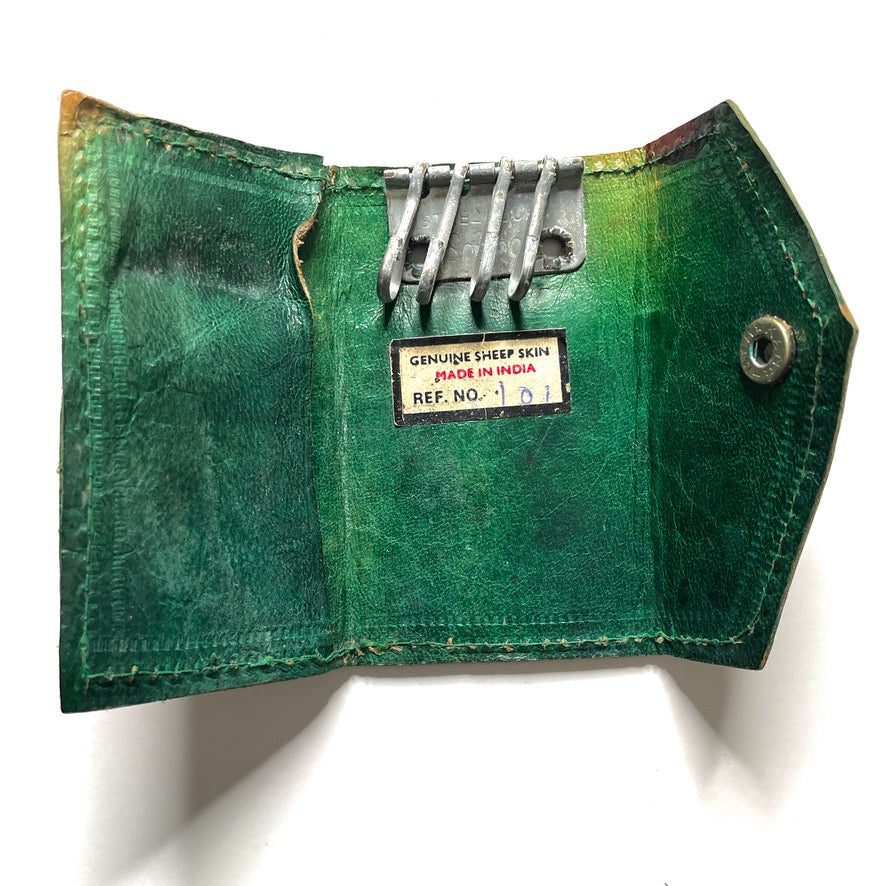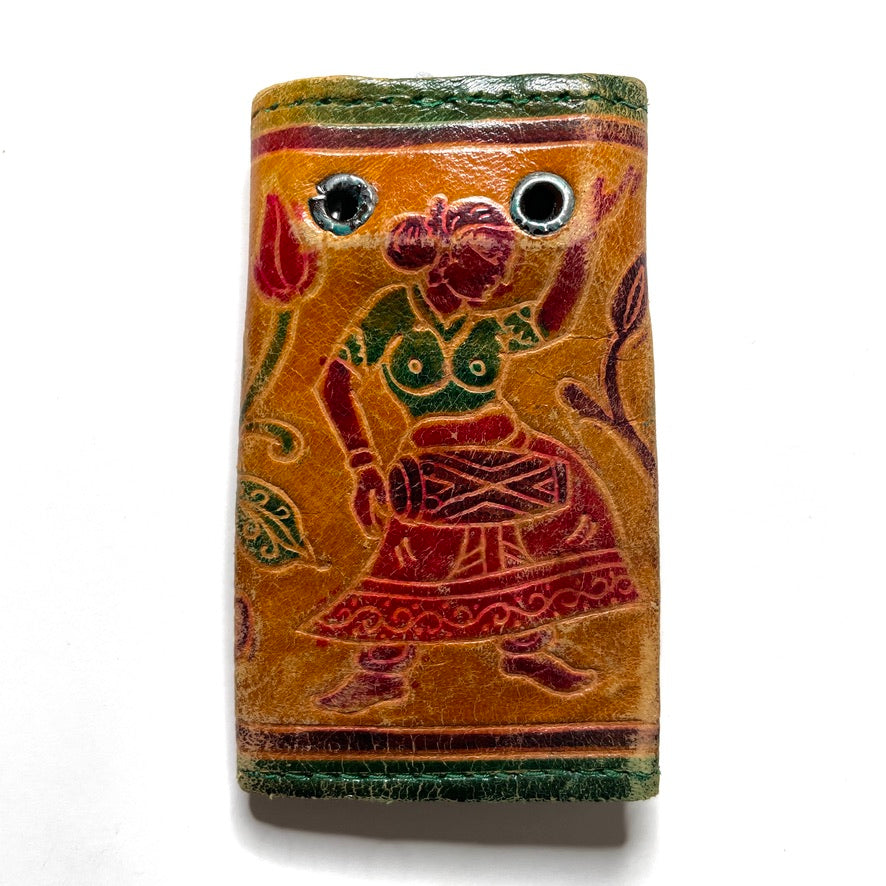 Colored and stamped women & flowers leather key case with button snap. Keys are secured on 4 fold-out hooks. Vintage sheepskin from India.